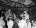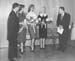 | 2001-51.49 | | A black and white photo of three women holding flowers and being interviewed by two men. |