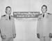 | 2001-51.647 | | A black and white photo of four people standing, holding a check in a store. |