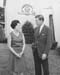 | 2001-51.638 | | A black and white photo of a man and woman smiling. The woman wears a fur stoll and holds Orange Gift Stamps. |