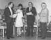 | 2001-51.451 | | A black and white photo of three men and Miss Jo from Romper Room. |