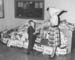 | 2001-51.649 | | A black and white photo of a young boy holding a Gold Bond box and a woman standing with her hair wrapped in paper. |