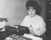 | 2001-51.484 | | A black and white photo of Tammy Hayes wearing a beehive and sitting at a typewriter. |