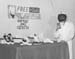 | 2001-51.327 |  | A black and white photo of a Keds display that offers a free space decoded.  A clown in a space suit stands right. |