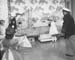 | 2001-51.500 |  | A black and white photo of three children putting boxes of candy bars in brown paper bags.  A man (left) adds purchases on what appears to be a cash register. |