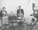| 2001-51.402 |  | A black and white photo of a woman standing (left) with a whip.  Three young men stand right with arms outstretched as if to block her lashes.  They are smiling and laughing.  A suburban house can be seen in the distance. |