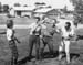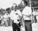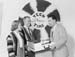 | 2001-51.515 |  | A black and white photo of two men standing with a microphone.  Cab driver Richard DeBord was interviewed at poolside by announcer Frank Haynes after he landed $1000 cash prize. |