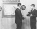 | 2001-51.668 |  | A black and white photo of a man and boy in front of a weather map sponsored by McDonald's.  This boy won a prize for accurately predciting the weather for the first day of spring. |