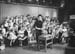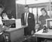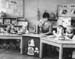 | 2001-51.421 | | A black and white photo of Miss Jo of Romper Room and children sitting behind desks and playing with puppets. |