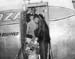 | 2001-51.385 | | A black and white photo of one woman greeting another woman who is exiting an airplane with a pinata shaped like a bull. Airplane reads: "Flagship Fort Sumter." |