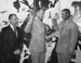 | 2001-51.208 | | A black and white photo of KTTS group. Mary Elizabeth Cox (center) holding trophy that reads: "Women of Achievement Award - 1965". |