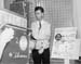 | 2001-51.483 | | A black and white photo of a KTTS camera filming a man standing next to a sign advertising a Spinning Top Contest. |