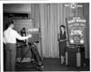| 2001-51.408 | | A black and white photo of Miss Jo with a jack-o-lantern and toy indians being filmed by a KTTS camera. A map of the U.S. entitled: "The Fadler Map" can be viewed behind her. |