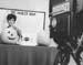 | 2001-51.600 | | A black and white photo of a female professor standing at a podium in front of a KTTS camera. The blackboard reads: "Introduction to Literature". |