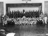 | 2000-169-4 | | Black and white photoprint of the Lincoln High School Marching Band posing in uniform on and in front of a stage in the school gymnasium. Band director Gerald Brooks stands in front at the far right. |