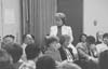 | 1992-232.1845 | | A black and white photo of several high school journalism students seated at a table. Attached to the photo was a note reading, "Assembling the notes taken can be a long, tedious project unless a reporter is able to produce a good, quick lead." |