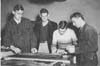 | 1992-232.1842 | | A black and white photo of four male high-school students working on a circuit board. |