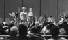 | 1992-232.231 | | A black and white photo of Roseanne Bentley taking part in a meeting of Missouri School Board Association. |