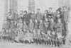 | 1991-16-4 | | Black and white mounted photo of a group of 37 boys standing in front of brick school building. Writing on back of photo says, "Old Central School; Bunger = 12th from left front row; Thomas A. Kearney (12th from left, front row); Old Central High School" The school is the Central School at the northwest corner of Jefferson Ave. and Olive St. |