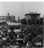 | 1999-42-2 | | Black and white photo of the 1883 Civil War veteran's reunion on the public square. A large crowd is gathered around a reviewing stand. The Lyon monument is visible to the left of the stand wrapped in a flag. Looking west towards College St. |
