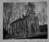 | 1992-29 | | Sepia print ,mounted on cardboard, of a brick church with a bell tower. Photo taken when the dozen or so trees around it were without leaves. A two-story building is in the background and a picket fence is in front. There appears to be a sidewalk in front and there are limestone curbs at the edge of the street. It is a photo of St. Paul M.E. Church South on the SW corner of South and Walnut taken between 1885 and 1904. Measurements/Size: 2 7/8" x 3 3/8" on 3 1/2" x 4 3/8" scalloped cardboard with gold on edges. Material/Color: emulsion, paper affixed to cardboard/sepia tone. Photo may have been reversed. Machine Made |