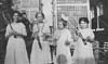 | 1992-215.198 | | A black and white photo of Marion Bissett (right) and left to right: Jane, Vivian, and Viola holding a tennis rackets. |